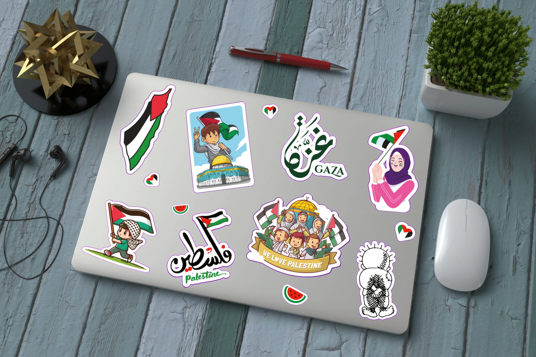 Ces autocollants ne sont pas seulement des accessoires visuels, mais aussi un moyen puissant d’exprimer votre amour et votre soutien à la Palestine. Parfaits pour décorer votre ordinateur portable, vos cahiers, vos livres, et bien plus encore.